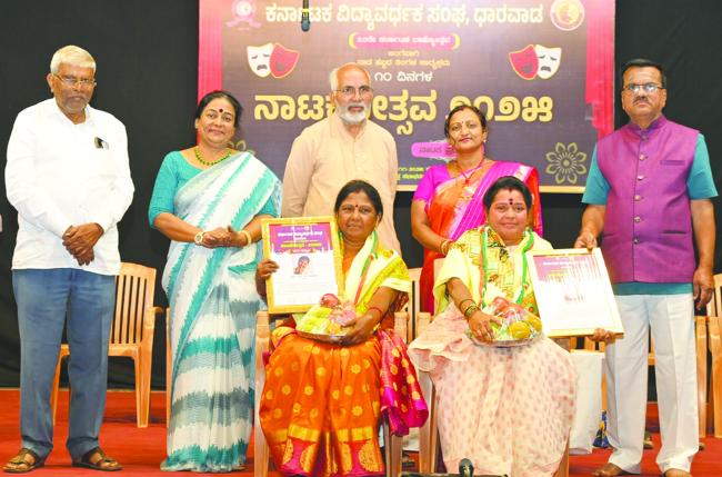 ಕಾರ್ಯಕ್ರಮದಲ್ಲಿ ರಂಗ ಕಲಾವಿದರಾದ ಹುಬ್ಬಳ್ಳಿಯ ಗೀತಾ ಶೃಂಗೇರಿ ಹಾಗೂ ಲಕ್ಷ್ಮೀ ಹೊಸಪೇಟ ಇವರನ್ನು ಸನ್ಮಾನಿಸಿ ಗೌರವಿಸಲಾಯಿತು.